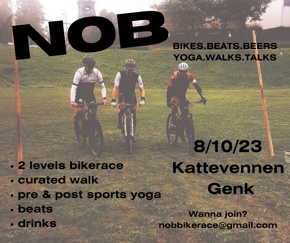 Full NOB event experience: Pre & Post sports yoga + bikerace or walk + beats en bar: €20