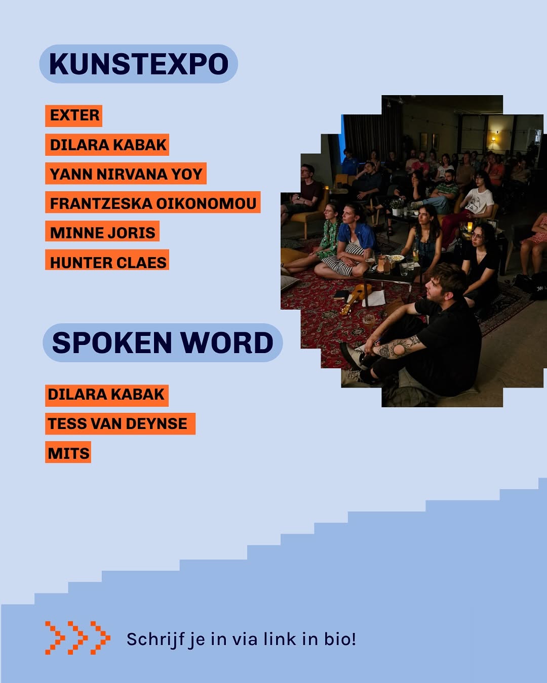 Meli Awouters (moderator): Melissa (die/zij) is een journalist en woordkunstenaar uit Genk. In diens journalistiek en artistiek werk gaat Meli vaak op zoek naar kruispunten: tussen muziek en maatschappelijke verandering, poëzie en sociale impact of allerlei andere brandende thema’s.